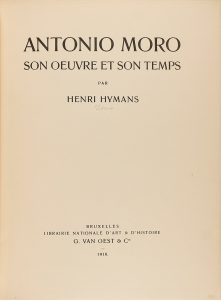1910. (ARTE). HYMANS, HENRI: ANTONIO MORO SON OEUVRE ET SON TEMPS. Bruxelles: Libr. Nationale d´Art & d´Histoire G. Van Oest & Cie, 1910. 4º mayor. X + 199 p. Abund. láms. de las obras del artista. Enc. en plena piel, doble tejuelo.