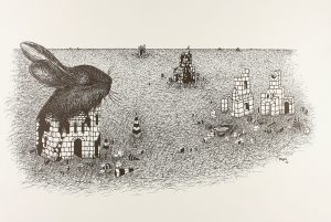 TYMPANS SANS TAMBOURS », con cubiertas en color coral de 34 X 45 diseñada por el autor que contiene dos hojas color coral y 12 láminas grabadas por Toyen en punta seca. El autor Radovan IVSIC, nació en Zagreb en 1921 y es conocido por ser un autor dramático y un poeta ligado al surrealismo, siendo su máximo promotor en Checoslovaquia. Edición numerada y limitada a 575 ejemplares.