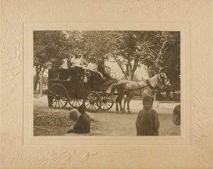 1900 ca. FOTOGRAFIA DE UN CARRUAJE. Fotografía montada sobre cartoné, 12 x 17 cm.