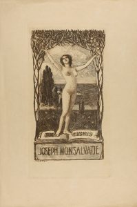 S. XIX. (EX-LIBRIS). LOTE DE TRES EX-LIBRIS DE MONTSALVATGE Y UN GRABADO DEL S. XVIII. El grabado representa una mujer del reino de Granada y va firmado por Theodorum Viero.