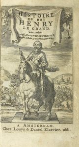 1661. PEREFIXE, HARDOUIN DE: HISTOIRE DU ROY HENRY LE GRAND. Amsterdam: chez Louys & Daniel Elzevier, 1661. 12º. 10 p. + 522 p. Marca tipográfica en portada. Viñetas, capitales y cul-de-lampe. Enc. en media piel y puntas. Discreta restauración...