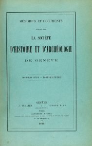 1896. (GENEVE). MEMOIRES ET DOCUMENTS PUBLIES PAR LA SOCIETE D´HISTOIRE ET D´ARCHEOLOGIE DE GENEVE. Geneve: J. Jullien, Georg & Cie, 1896. 4º menor. XIII + 716 p. Enc. en media piel, nervios, doble tejuelo, lomo algo rozado. Ex-libris del...