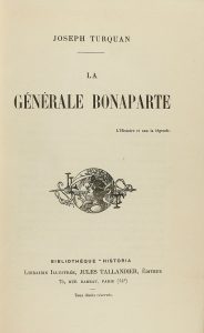 1900 ca. (HISTORIA). TURQUAN, JOSEPH: LA GENERALE BONAPARTE. Paris: Libr. Jules Tallandier, s.a. 8º mayor. 352 p. Láms. Enc. en plena piel, tejuelo.