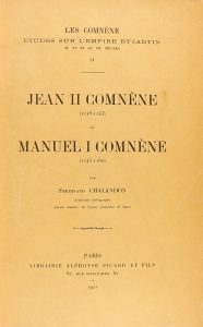 1912. CHALANDON, FERNIDAND: JEAN II COMNEN (1118-1143) ET MANUEL I COMNENE (1143-1180). Paris: Libr. Alphonse Picard et Fils, 1912. 4º menor. LXIII + 709 p. Enc. en plena piel, nervios, doble tejuelo. Escudo del Marqués del Saltillo grabado en...