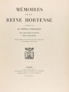 1928. (HISTORIA). MEMOIRES DE LA REINE HORTENSE PUBLIES PAR LE PRINCE NAPOLEON. Paris: Libreairie Plon, 1928. Folio menor. Frontis fotograbado. 539 p. Ilustraciones en el texto y láminas con fotograbador y reproducciones. Encuadernado por Arias en...