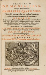 1666. (HUMANIDADES). PELLIZZARIO, FRANCISCO: TRACTATIO DE MONIALIBUS IN QUA RESOLUUNTUR OMNES FERE QUAESTIONES. Romae: Guillelmio Halle, 1666. 8º menor. 4 h. + 887 p. Portada a dos tintas. Gradabo xilográfico en portada y en la vuelta de la...