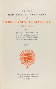 1930. (BIOGRAFIA). MASSARETTEM JOSEPH: LA VIE MARTIALE ET FASTUEUSE DE PIERRE-ERNEST DE MANSFELD (1517-1604). Paris: Edit. Duchartre, 1930. 2 tomos en 1 vol. en 4º mayor. I: XII + 272 p.; II: 309 p. Texto a dos tintas. Enc. en media piel, nervios....