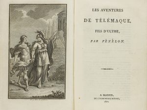 1822. FENELON: LES AVENTURES DE TELEMAQUE FILS D´ULYSSE. A Madrid: de l´Imprimerie Royale, 1822. 8º menor. 7 h. + 363 p. Frontis, 10 láminas al acero y un mapa plegado. enc. en plena piel con tejuelo.