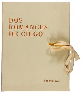 1980 ca. (BIBLIOFILIA). CELA, CAMILO JOSE: DOS ROMANCES DE CIEGO. S.l., Imp. l´Estol de Lletres. 8º. Ejemplar en rama impreso en grueso papel de hilo con ilustraciones xilográficas. En rama y presentado en una carpeta en cartoné. Esta edición...
