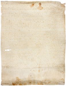 1689. (FELANITX-MALLORCA). VENTA DE CASA Y CENSAL EN LA VILLA DE FELANITX, MALLORCA. Manuscrito sobre pergamino, 33x25 cm. Texto en latín.