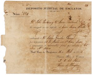 1853. (CUBA-ESCLAVITUD). DEPOSITO JUDICIAL DE ESCLAVOS. 1 h. mitad impresa, mitad manuscrita.