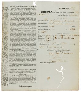 1856. (CUBA-ESCLAVITUD). CEDULA DE SEGURIDAD DE UN EMANCIPADO. 1 h. mitad impresa, mitad manuscrita.