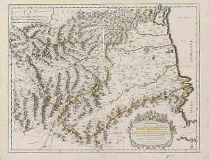 1660. (ROUSSILLON). SANSON: SARDONES. EVESCHE DE ELNE OU DE PERPIGNAN. COMTE DE ROUSSILLON ou sont les Veguerie de Perpignan, souvegerie de Vall-Spir, veguerie de Villefranque de Conflent, souveguerie de Capsir. Mapa grabado al cobre, 40x52 cm....