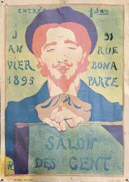 René-Georges Hermann-Paul (1864-1940) « Salon des Cent, janvier 1895 ». Affiche lithographique en couleurs. Entoilée (jaunie, trous d’accrochages, épidermures). 60 x 40,5 cm.