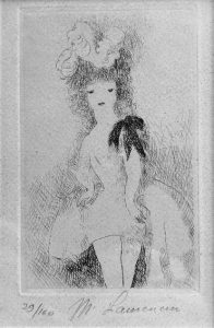 Marie Laurencin (1883-1956) Jeune fille au nœud noir (1926). (Marchesseau 93). Eau-forte signée et numérotée : 29/160. Cadre. 13 x 8 cm.