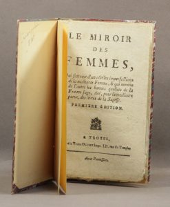 [BIBLIOTHÈQUE BLEUE]. Le Miroir des femmes, qui fait voir d’un côté les imperfections de la méchante Femme, & qui montre de l’autre les bonnes qualités de la Femme sage […]. Première édition. Troyes, Veuve Oudot, [1717] ; plaquette...
