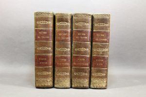 Heures latines et françoises à l’usage du diocèse de Troyes. Troyes, Veuve Gobelet, 1783-1784 ; 4 forts vol. in-12, basane vert mousse, dos long orné de motifs dorés, pièces de titre et de tomaison brunes, tranches marbrées, [Rel. de...