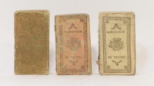 [TROYES]. Éphémérides troyennes pour l’an de grâce M. DCC. LVIII.— M. DCC. LXXXVII.— M. DCC. LXXXIX. Troyes, Paris, veuve L. G. Michelin, Duchesne, A. P. F. André, 1758, 1787, 1789 ; ensemble 3 vol. pet. in-16 étroit, brochés, une...