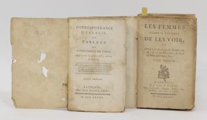 [CURIOSA].— [COICY (Madame de)]. Les Femmes comme il convient de les voir. Londres, Paris, Bacot, 1785-1786 ; 2 tomes en un fort vol. in-12, broché, couverture postérieur de papier marbré polychrome. Édition originale. Barbier, II, 446....