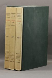 ARLAND (Marcel). L'Ordre. Paris, Gallimard, 1929 ; 3 vol. gr. in-8, brochés, non coupés, sous étui. Édition originale. L’un des 109 exemplaires numérotés (n° IV) du tirage de tête sur papier vergé de Lafuma-Navarre réimposé au format...