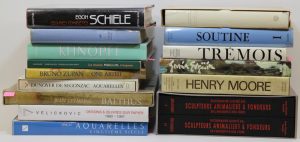 • KALLIR (Jane). Egon Schiele. Œuvres complètes. Paris, Gallimard, 1990 ; in-4, cartonnage de l’éditeur toile brique, jaquette illustrée.