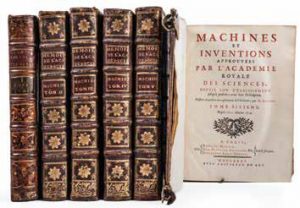 Gallon Jean Gaffin. Machines et Inventions approuvées par l’Académie Royale des Sciences, depuis son établissement jusqu’à présent, avec leur description. Paris, Boudet et Martin, Coignard et Guérin, 1735, 6 volumes in-4 reliés pleine basane,