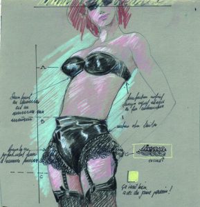 Dessin à la cire de couleurs et crayolor pour une pin-up publiée dans le n°8 de « CHARLIE » :