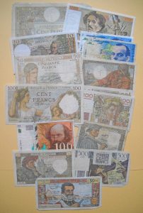 Cérès (1936) ; 3 ex. 100 F Jeune paysanne France (1946, 1948 et 1949) ; 100 F. Sully (1941) ; 10 F. Mineur (1949) ; 100 F. Cézanne (1997) ; 50 nouveaux francs Henri IV (1961) ; 50 F. Jacques Cœur (1940) ; 500 F. Châteaubriand (1947). États divers.