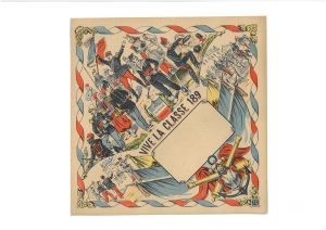 Lot de + de 65 pièces : programmes de manifestations et de fêtes militaires, invitations, menus, etc - Plaquette in-fol. intitulée " Collection des programmes du théâtre militaire du 62e de ligne illustrés par Gabriel Gostiaux, Dijon, 1864-1865 " - Carnet ayant appartenu au capitaine d'habillement du 3e régiment de cuirassiers intitulé " Uniformes de l'armée allemande " contenant descriptions et dessins imprimés à rehauts d'aquarelles, 86 pages in-12 - Ordonnance du roi concernant les gardes du corps de Monsieur, à Paris, impr. royale, 1819, 15 pages in-4 - Gravures, lithographies de batailles, uniformes, etc - Affiches - papiers à lettre illustrés - Correspondances d'officiers - Bons de tirage au sort - etc.