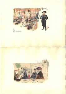 Henri WEIL dessinateur (1873-1947), représentant les cabarets de Montmartre à Paris dans les années 1899-1900, 22 x 31,5 cm - 40 planches en couleurs ou à fond teinté et couverture extraits de l'ouvrage Les programmes illustrés des théâtres et des cafés-concerts, menus, cartes d'invitation, etc par Ernest MAINDRON édité en 1897 - Enveloppe à l'adresse de Monsieur Chamboissier portant la signature et le cachet de Paul POREL, directeur du théâtre du Vaudeville à Paris - 3 cartons d'invitations du Moulin Rouge, 1897 et 1900 - Fascicule de 6 pages de " l'Antre des Sorciers " à Paris - la Petite Revue des grands succès, numéro spécialement consacré au théâtre de l'Athénée, mai 1907 - Programme du théâtre du Divan Japonais avec illustrations imprimées en couleurs de Maurice Millière - Programme de l'Athénée musical de la ville de Paris de 1830 - Programme du théâtre des Arts de Rouen de 1813 - Plaquette de 25 pages " La vie de Paris " du 25 mai 1905 - L.A.S du directeur de l'Athénée des Arts datée de 1807 - etc.