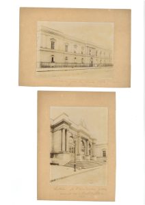 [Touraine] 7 photographies d'époque, fin du XIXe siècle. 3 clichés de l'ancienne gare de Tours, 1890-1892 : entrée ; façade ouest ; façade est. 11,5 x 16 cm - 3 clichés de la nouvelle gare de Tours en construction, 1898-1899, env. 12 x 17 cm -...