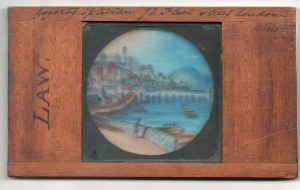 [Loir-et-Cher - Blois] Plaque peinte de lanterne magique, Gogerty Optician, 72 Fleet Street à Londres, actif entre 1837-1856, 17 x 10 cm