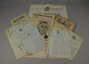 [Vieux papiers] LOT de 15 VIEUX PAPIERS dont circulaires administratives des "Agdministration de l'Enregistrement et des Domaines" signées, État Civil, arrêt de la Cour Royale. XVIIIème et XIXème. Format moyen : Haut. 28, Larg. 22 cm....