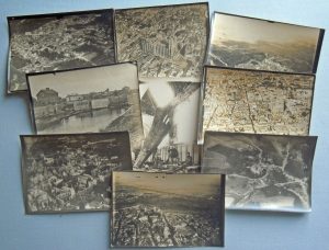 racontées par un témoin oculaire durant la guerre 1914-1918 - Carte des préparations de la guerre au cours de l'année 1917 éditée par L'Ouest-Eclair - Diplômes d'officier et de commandeur à l'ordre de Nichan Iftikhar de Tunisie, 1930 et 1945 - 16 clichés photographiques dont 14 vues aériennes des villes françaises et belges situées en zone de front (Bergues, Ypres, Dunkerque, Dixmude, etc), 1917-1918 - 9 photos de famille dont portrait du lieutenant Marchal - Vues de Rouen, paire d'eau-forte à rehauts de couleurs, signées " Victor Valéry " en bas à droite, , 34 x 25,5 cm - Portrait en pied d'un poilu, dessin encre et aquarelle par Charles Rocher de Gérigné (1890-1962), signé et daté 1931 en bas à droite, 27 x 19 cm - Portrait en buste d'une vieille femme à la coiffe , dessin à l'encre et crayon par Charles Rocher de Gérigné (1890-1962), signé et daté 1930 en bas à gauche, 32 x 24 cm - Cavalier de l'armée britannique, dessin à l'encre et aquarelle par " E. Rousselot " dédicacé et daté 1920 en bas à droite, 32,5 x 25,5 cm (acctds) - Soldat de l'armée française du XVIIe siècle, dessin à l'encre et aquarelle par " P. Martin ", dédicacé et daté Paris 1923 en bas à gauche, 37,5 x 28 cm (accdts). Ernest Louis Adrien MARCHAL (1889-1961), petit fils du précédent, né à Liège en Belgique, entre à l'école militaire de Rambouillet comme enfant de troupes en 1903. A la sortie de l'école, il s'engage comme volontaire en 1907 et incorpore le 82e régiment d'infanterie. Dès le déclenchement de la grande guerre, il est blessé à Barcy (Marne) et sera cité à l'ordre du régiment pour s'être particulièrement distingué au combat ayant réussi avec quelques hommes a arrêté une avance ennemie. En 1915, il est promu sous-lieutenant et est affecté au 164e régiment d'infanterie. En 1918 il est promu lieutenant et est détaché comme conservateur adjoint au musée de l'armée où il y terminera sa carrière militaire. Il fut décoré de la croix de guerre étoile de bronze, de la médaille de la Victoire, de la médaille commémorative de la grande guerre et lui fut décerné le grade de chevalier de la légion d'honneur en 1928.