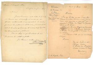 - L.S. de Louis-Étienne François HERICART-FERRAND, vicomte de Thury (1776-1854), maître des requêtes et directeur des travaux de Paris, Paris, 17 mars 1824 : " J'ai reçu la lettre que vous m'avez fait l'honneur de m'écrire le 3 de ce mois, pour me donner, ainsi que je vous en avais prié, une estimation de l'horloge du palais de l'institut, exécutée par M. Lepaute. Je vous prie monsieur d'agréer mes remerciements des détails que vous volez bien me transmettre sur la valeur de cette pendule et le mérite de son exécution… "