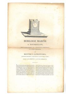 [Premier Empire] Horloge marine à tourbillon. Rare fascicule intitulé " Horloge marine à tourbillon dont l'échappement est à remontoir indépendant et à force constante et montre à longitudes à doubles secondes, à équation et à quantième...