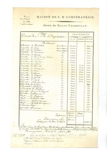 1 page in-8, adressée à ses " chères amies " : " J'ai bien tardé à vous répondre (…) excessivement excédée des importuns depuis que je loge au Luxembourg. Mon temps se passe en puérilités et la pauvre amitié en souffre, c'est toujours le jouet des vents ou de force ou de gré elle gémit toujours dans l'indolence… " Joint une gravure la représentant en buste. - L.A.S. de Marie Louise Joséphine de BOURBON (1782-1824), infante d'Espagne et reine d'Etrurie, 1807, adressée à Hector d'AUBUSSON de la Feuillade, ministre plénipotentiaire de France auprès de la reine d'Etrurie, texte en italien, 1 page in-8, belle lettre à entours de décor doré de style Empire. [En 1801, Napoléon transforme le grand-duché de Toscane en royaume d'Étrurie dont elle devient reine, puis régente à la mort de son mari en 1803. En 1807, Napoléon dissout le royaume d'Étrurie dont le territoire est rattaché à l'Empire. Marie-Louise se réfugie à Madrid, puis suit son père destitué et exilé en France par Napoléon, en 1807.] - L.A.S. de Désirée CLARY (1777-1860), un temps fiancée à Napoléon Bonaparte, épouse du général Bernadotte et Reine de Suède, Vichy, 23 juillet, 1 page in-8. Elle remercie un correspondant de s'être occupé pour elle d'une affaire. - L.A.S. de Jeanne Louise Elisabeth BERG (1771-1852), épouse de Jean de Dieu SOULT duc de Dalmatie, maréchal d'Empire, Paris, 27 mars 1809, 1 page ½ in-8, adressée à M. le comte : " (…) les nouvelles de mon mari me parviennent toujours très difficilement ; il sera désespéré de ne pas pouvoir faire la guerre en Allemagne, et je partage bien son chagrin à cet égard. On parle beaucoup du départ prochain de S. M. dont une partie de la maison est en route depuis la semaine dernière… " - P.S. de Louise GUENEHEUC, duchesse de MONTEBELLO (1782-1856), épouse du maréchal d'Empire de LANNES, Paris, 30 avril 1811, 1 page in-fol., titrée " Maison de l'impératrice - service du grand Chambellan ", tableau récapitulant la liste de toutes les dames d'honneur et d'atours de l'Impératrice avec pour chacune leur traitement annuel. - L.A.S. d'Anne GOUVION (1775-1844), épouse de Laurent GOUVION marquis de Saint Cyr, maréchal d'Empire, Reverseaux, 13 novembre 1812, 1 page in-8, sollicitation de placement. - L.A.S. d'Aglaé Louis AUGUIÉ (1782-1854), " princesse de Moskowa ", épouse de Michel NEY maréchal d'Empire, dame de compagnie de l'Impératrice Joséphine, puis de Marie-Louise, 29 mars [1815], 4 pages in-8, adressée à son cousin Edmond CARDON, ancien aide de camp : " J'ai envoyé à votre lettre à monsieur de Montalivet (…) si j'ai un conseil à vous donner c'est de ne pas faire de nouvelles démarches dans ce moment-ci. Notre famille a sans doute excité de la jalousie dans un moment où elle était comblée de l'Empereur ! Et ce pauvre Henry s'est trouvé la victime des réflexions qu'on a surement faites à ce sujet, sa préfecture lui a été ôtée et donnée à un autre. Vous jugez quel coup ce sera pour lui et surtout ce que cela a été pour ma pauvre tante. Heureusement que nous sommes pleins de confiance dans les bontés de l'Empereur, et qu'il a promis à la Reine qui lui a peint le chagrin de ma pauvre tante (…) Mais en attendant cela fait la nouvelle de tout Paris !... " - L.A.S. d'Hortense de BEAUHARNAIS (1783-1837), fille de Joséphine, épouse de Louis Bonaparte, Reine de Hollande et mère de Napoléon III, 23 février 1828, adressée à M. Schetzler, 1 page in-8 : " Je consens à vendre ma maison à monsieur le comte de Papenheim pour le prix de quarante et un mille francs mais comme je vous l'ai dit je désire conserver les lustres que je dois faire venir ici l'année prochaine… " [En 1820, la duchesse de Saint-Leu, titre que Louis XVIII avait, comme on sait, donné à la reine Hortense, vint avec ses deux fils habiter Augsbourg et s'établir rue Sainte-Croix, dans une maison qui, plus tard, prit le nom de palais Pappenheim, parce qu'un comte de Pappenheim en avait fait l'acquisition. L'ex-reine de Hollande était venue à Augsbourg pour faire donner à ses fils une éducation solide.] - L.A.S. de " la Male Dchesse de Raguse " [Anne Marie Hortense PERREGAUX (1779-1857)], épouse du maréchal de MARMONT, duc de Raguse, aide de camp de Napoléon Bonaparte, 6 décembre, gaufrée à ses armes, 1 page in-12, adressée à un comte : " Ceci ressemble plus à du dévouement qu'à de l'élégance mon cher comte car venir affronter mon horrible chemin ce soir me paraît une entreprise digne des Paladins d'un autre temps. Il fallait me demander à dîner, puis que vous avez cette bonne pensée de venir me voir je vous en remercie avec reconnaissance. Vous me trouverez réfugiée au fin fond de mon petit appartement pour avoir plus chaud, ravie de voir un visage humain pour me distraire de la neige, des tracas, des voisins et des comptes de fin d'année… "