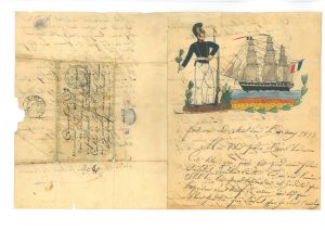 1 page in-8 obl. Comportant les signes du zodiaque, jour, date et fêtes. – L.S. de Pierre Marie TAILLEPIED de BONDY (1766-1847), préfet, Paris, 25 avril 1831. – L.A.S. de Marie Adélaïde LENORMAND (1772-1843), la célèbre voyante, amie de Joséphine de Beauharnais, 3 pages in-12. Au sujet de sa brochure en faveur de la duchesse de Berry : « Veuillez bien monsieur jetez un coup d’œil scrutateur sur ces trois feuilles d’épreuves (…) j’ai beau vouloir nuancée mes couleurs, en affaiblir les teintes ; mon génie commande : n’importe le danger ! Im me faut obéir ? Nous sommes dans un siècle où les femmes ne sont pas chose facile à gouverner… en fait nous verrons ce qu’il adviendra ! en attendant de vivre de Persil, corrigeons nos épreuves (…) ce me serait une chose de grande déplaisance de devenir avant peu sa très proche voisine, non à Londres, mais dans la bonne ville de Paris, quartier Saint Lazare dans la prison item… et ce pour avoir nonobstant bons conseils voire même sinistres prédications, m’être arrogée le droit de publier mainte brochure légitimiste à l’effet de défendre madame la duchesse de Berry et son fils… » [Elle publie en 1833 : Arrêt suprême des dieux de l'Olympe en faveur de Mme la duchesse de Berry et de son fils.] – L.A.S. de FRANÇOIS Ier d’Autriche (1768-1835), empereur d’Autriche, Baden, 1er août 1832, au comte Hartmann, 1 page in-4, en allemand. Lui décerne la croix de commandeur de l’ordre de l’Empereur Léopold pour ses mérites qu’il a déployés lors de son service auprès de son cher petit-fils, le duc de REICHSTADT. [Le duc de Reichstadt décède le 22 juillet 1832 à Schönnbrunn, le comte Hartmann était son officier d’ordonnance.] – Billet de convocation de la garde nationale de Pruillé, 29 nov. 1832, vignette – L.A.S. d’un soldat, « fait au rad à Toulon, le 11 may 1833 », embarqué à bord de la frégate La Bellone, en partance pour Ancône, adressée à ses parents, 3 pages in-4, ornée d’un beau dessin à l’encre, gouache et aquarelle, représentant un fusilier debout appuyé sur son fusil scrutant au large un trois-mâts arborant le drapeau français. – Congé de convalescence délivré à un canonnier au 6e régiment d’artillerie, Besançon, 1er juillet 1833, signé par Charles Antoine Louis Alexis MORAND (1771-1835), général. – L.A.S. d’Augusta Amélie de BAVIERE (1788-1851) épouse du prince Eugène de Beauharnais, au château d’Ismaning à Bade, 1er nov. 1838, 2 pages in-4, ornée d’un petit bouquet de fleurs : « Ayant communiqué votre lettre à ceux de mes enfants qui contribuent à la pension du marquis de Beauharnais, savoir le prince Max, la princesse de Hohenzollern, l’Impératrice douairière du Brésil et la princesse Théodolinda, je n’ai pu y répondre plus tôt. Mes enfants ne peuvent pas prendre l’engagement de continuer à Melle de Beauharnais une partie de la pension du marquis (…) mais ils donneront 4000 francs chacun le jour où Melle Hortense se mariera… ». – P.S. de Régis de Keredern de TROBRIAND (1816-1897), général, Limoges, 20 janvier 1841, autorisation de mariage délivrée à un soldat. – L.A.S. de Charles Ferdinand GAMBON (1820-1887), républicain antiroyaliste, 9 juillet 1841, 2 pages ½ in-8 – Pièce imprimée de présentation des vœux du tambour de la 4e compagnie de chasseurs, ornée d’une grande vignette lithographiée à la gloire du pouvoir en place. – L.A.S. d’Alcide du Bois de BEAUCHESNE (1804-1873), archiviste et auteur, Metz, 29 juillet 1842, 3 pages in-8, adressée à Alfred Nettement, journaliste légitimiste : « Je viens de lire dans le journal des Judas… ! (où diable la vertu, le talent, et la gloire vont-ils se nicher !) l’annonce de l’apparition prochaine de la vie de Marie Thérèse de France, fille de Louis XVI. (…) Mais je regrette bien de n’avoir pas connu plutôt votre projet ! J’ai en main des matériaux du plus puissant intérêt sur l’époque la plus tragique de cette vie éprouvée depuis son aurore jusqu’à son déclin. J’ai connu particulièrement deux gardiens du Temple qui voyaient tous les jours Madame Royale. J’ai puisé à pleines mains dans la mémoire encore jeune de ces deux vieillards. J’ai fouillé pendant de longues années dans les décombres du Temple, et vous ne sauriez croire tout ce que j’y ai trouvé de choses touchantes et encore inconnues. Et puis je suis propriétaire de vers composés par S.A.R. dans la tour du Temple et écrits de sa main. J’ai de sa main aussi son itinéraire depuis sa sortie de prison jusqu’à la frontière. Je vous dirai un jour comment ces pieuses reliques m’ont été léguées (…) depuis longtemps je songe à une histoire des Tours du Temple pendant la Révolution, et à une histoire de Louis XVII, dont j’ai pu, jour par jour, heure par heure, enregistrer la longue et cruelle agonie… » - P.S. d’Etienne Maurice GERARD (1773-1852), maréchal de France, Paris 12 déc. 1843, en-tête, nomination de chevalier de la légion d’honneur. – L.A. de Charles Henri VERHUELL (1764-1845), amiral, Paris, 28 février 1845, ½ page in-8, adressée au duc Pasquier, déclinant son invitation. – L.A.S. d’Adolphe BLANQUI (1798-1854), économiste et frère du célèbre révolutionnaire socialiste, Paris, 5 avril 1847, 1 page in-8. – etc.