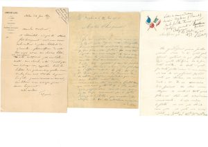 1 page in-8 [Au lendemain de la bataille de Magenta] : " M. le maréchal n'a pas été atteint fort heureusement : mais nous avons eu le malheur de perdre le colonel de Senneville ; plusieurs officiers de notre état-major ont eu des chevaux blessés ; (…) mon cheval a été démoli par une décharge assez rapprochée… " + enveloppe obl. cad Armée d'Italie/3e corps 10 juin - Timbre 20c. Empire Lauré obl. losange " ACRE ", 1859. - L.A.S. de " Ferrari " en italien, ornée des étendards français et italiens en couleurs, et apostille en français : " Lettre de recommandation donnée à Voghera (Piémont) par la famille Ferrari… ". - L.A.S. d'un soldat, Voghera, 23 mai 1859, obl. Cad Armée des Alpes/Bau F, du 25 mai 1859, taxe manuscrite 3, verso ambulant Marseille à Paris, et cad d'arrivée à Paris 29 mai, adressée à ses parents, 3 pages in-8 [au lendemain de la bataille de Montebello] : " (…) ce sont les 74e, 84e et 1ere zouave qui ont les honneurs de la victoire ; j'espère cependant que ce sera bientôt notre tour. (…) Le 20, les Autrichiens au nombre d'environ 16000 hommes sont tombés sur les trois régiments que je viens de vous citer. Le combat a duré 5 ou 6 heures : les chasseurs tyroliens nous ont fait beaucoup de tort avec leur adresse à manier la carabine, mais ils ont reculé devant nos charges à la bayonnette. L'ennemi avait 12 batteries d'artillerie et s'était emparé de belles positions, mais quoique leur artillerie ait entièrement démonté une des deux seules batteries que nous possédions, ils ont été forcé de se retirer en laissant 400 prisonniers et 2 pièces de canon. Cette victoire nous a cependant coûté cher. Le général Beuré est tué ; les Piémontais ont perdu un colonel de lanciers. (…) Nous sommes sur la route de Turin, les Autrichiens reculent toujours devant nous ; il y a 15 jours qu'ils ont quitté Grava, l'étape avant Castel-Nuovo. Nous avons aujourd'hui le 23, demain est l'anniversaire de la bataille d'Ischriden en 1857 en Kabylie, la dernière gloire du régiment… ".