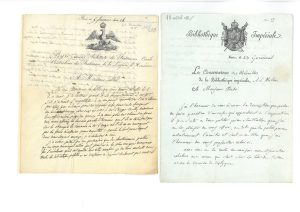 messidor an XII, envoyée par le peintre David au maire d'Albi, 1 page in-4 impr., adresse. - P.S. de Jean-Baptiste baron REGNAULT 1754-1829), peintre néoclassique ; Billet d'entrée pour la " Galerie de M. le Baron Regnault, membre de l'académie Royale des Beaux-Arts, rue de l'école de Médecine… ". - L.A.S. de Pierre Alexandre VIGNON (1763-1828), architecte néoclassique, Paris, 17 mai 1806, 1 page in-4, adressée à un marchand de fond, étant intéressé pour l'achat d'un château sur la terre de Chessi ; joint impr. " P. Vignon architecte à la Convention nationale sur la nouvelle salle dans le palais des Tuileries " (incomplet) - L.A. d'Antoine GROS (1771-1835), peintre, Paris, 16 déc. 1824, à M. Boucher, premier violon du roi d'Espagne, demi page in-4. Il regrette de ne pas s'être trouvé chez lui pour recevoir M. Boucher et propose à celui-ci de revenir dimanche à onze heures. - L.A. de Robert LEFEVRE (1755-1830), peintre, fin 1827, demi page in-4. Brouillon de sa réponse à la suite d'une L.S. des administrateurs des Bains de Marie-Thérèse de la Rochelle du 15 déc. 1827. Il les remercie pour leurs félicitations au sujet du portrait de S.A.R. Madame la Dauphine que le Roi a accordé à l'établissement des bains de la Rochelle : " Je m'y suis surpassé. J'y ai fait du moins mes efforts. Lorsqu'il s'agit de donner une idée de la majesté nie aux vertus les plus éminentes un cœur français (…) ne peut jamais assez bien exprimer tout ce qu'il y a de noblesse dans les traits de cette auguste princesse… ". - L.A.S. de François-Marius GRANET (1775-1849), 7 décembre 1831, 1 page in-8 : " J'ai l'honneur de vous présenter un petit tableau que j'ai exposé au dernier salon, (…) je pense, messieurs, que sa forme et le prix de trois cent francs que j'y attache pourront convenir à votre estimable société… ". - 4 L.A.S. de Victorine JAQUOTOT (1772-1855), peintre sur porcelaine, 1819 à 1833, 1 page in-8 ou in-4 chaque : Paris, 16 avril 1819 : " J'ai l'honneur de vous prévenir que j'ai livré depuis quelques jours à la demande de M. le comte de Pradel et entre ses mains, le portrait de Jeanne d'Albret pour faire partie de la collection commandée par le roi… " ; 18 mai 1825 : " Madame la baronne de Marguerite veut elle bien, en agréant mes civilités empressées que je lui rappelle la promesse qu'elle m'a faite de venir voir mon tableau de la Corine terminée, ainsi que le portrait d'Anne de Boulen d'après le fameux Holbein ?... " ; Paris, 2 avril 1829 : " Monsieur le duc, si vous le permettez j'aurai l'honneur de vous porter (…) le petit tableau que je viens d'achever (celui de l'Espérance de Gérard) ; et que je désire vivement ainsi que monsieur Gérard pouvoir mettre sous les yeux du roi quand Sa Majesté daignera le permettre… " ; Paris, 14 sept. 1833, à l'architecte Lebas au sujet d'une visite de son atelier avec Visconti. Joint L.A.S. de M. de Lourdoueix, 10 février 1825, relative à la pension de Jacquotot. - L.A.S. de Pierre François FONTAINE (1762-1853), architecte et décorateur de Napoléon Ier et de Charles X, 13 déc. 1827, 1 page in-4 - L.A.S. d'André GALLE (161-1844), graveur, 20 brumaire an XII (12 nov. 1803), 1 page in-8 - L.S. de Nicolas Pierre TIOLIER (1784-1843), graveur et médailleur de la monnaie de Paris, 22 février 1809, 1 page in-fol. - L.A.S. de François Joseph BOSIO (1768-1845), sculpteur, au peintre François Joseph Heim, 2 pages in-8. Il n'est pas encore suffisamment rétabli pour supporter les fatigues du jury : " (…) vous savez que quand il n'y a pas quelqu'un qui porte un peu d'intérêt à un artiste et qui puisse faire valoir des qualités à côté des défauts, il est arrivé quelquefois en peinture comme en sculpture que des ouvrages ont été refusées, mais auraient été reçus si quelque membre du jury se fut intéressé à l'artiste… ". - L.A.S. d'Antonio CANOVA (1757-1822), sculpteur italien, texte en italien, 1 page in-4, adressée à madame de Custine. Bien qu'étant légèrement indisposé, il espère être en état de recevoir chez lui l'aimable visite de Madame de Custine. - L.A.S. d'Antoine Marie PEYRE (1770-1843), architecte, Paris, 5 frimaire an XIV (26 nov. 1805), à son en-tête, vignette à l'aigle impérial. - etc.