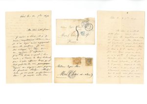 Guerre 1870/1871 - Sedan - Loir-et-Cher - Philatélie] 2 pièces, 1870. 2 L.A.S. avec enveloppes d'Eugène Macé, originaire de Mer (Loir-et-Cher), soldat français prisonnier à Sedan, qui écrit à son épouse : 3 sept. 1870 à Sedan,...
