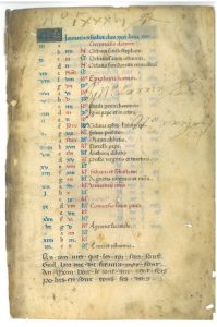Fragment calendrier 15éme. 20 x 13,2 cm.