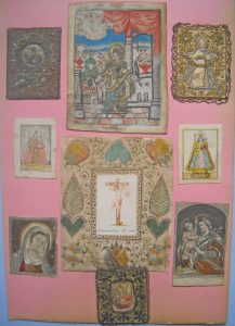 [Images pieuses] École européenne et travail d'ouvroir. XVIIIe siècle. Réunion de 30 images pieuses gravées sur papier vergé ou sur parchemin, certaines rehaussées à l'aquarelle et feuille d'or, d'autres peintes à l'aiguille à décor brodé...