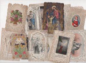 [Images pieuses] + de 350 images pieuses à dentelles. XIXe et XXe siècles. Lot de + de 350 images pieuses à dentelles industrielles, de la 1ère moitié du XIXe jusqu'au début du XXe siècle, dont une partie contrecollée sur papier épais....