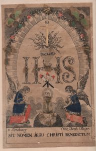 [Imagerie religieuse] Strasbourg, OTTINGER Joseph. 4e quart du XVIIIe siècle. 8 estampes gravées en taille douce sur papier vergé, avec incrustation de papiers colorés et de feuilles de métal illustrant la vie de Jésus-Christ à destination des...