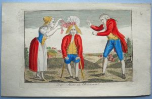 si Acconcia in Abito di Casa ; Estat et Inverno ; Carlo VI imperatore de Romani ; Cristina Elisabetta imperatrice de Romani ; Don Phelipe de Francia Rey de Espana ; La princesse de Parme Reine de Espana ; les quatorze œuvres de miséricorde spirituelles composées de 2 séries de chacune 7 estampes reliées par un point de fil, l'une en noire et l'autre coloriées ; 4 p. de scènes de chasse ; Der Mann als Haubenstock ; etc - 2 épreuves gravées sur bois coloriées, 44 x 33 cm : Il cane Barbino ; Il gatto Domestico - 5 lithographies. La plupart des estampes éditées par la maison Remondini.