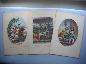 env. 30 x 44 cm et inverse, dont : sujets enfantins ; Vaisseau en flammes ; Naufrage ; La République française ; La Gloire de la France ; Joseph Garibaldi et sa famille ; A. Thiers ; Constitution ; Léon Gambetta ; Lorraine ; Bataille de Magenta, etc. Qqs rousseurs et manques. Joint 3 puzzles de jeux enfantins par Wenzel.