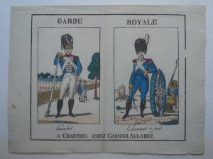 habitants des Quatre Continents (4x3), datée 1825 ; Judith et Holopherne, gravée par A. Thiébault (léger pli) ; Garde royale : grenadier et canonnier à pied. 40 x 30 ou 30 x 40 cm. - Orléans, Michel RABIER-BOULARD, actif de 1812 à 1842. Le vrai portrait du juif-errant…, gravure sur bois coloriée au pochoir, papier vergé, montées sur papier fort, 28 x 37,5 cm ; Complainte sur la pucelle d'Orléans, seconde moitié du XIXe siècle, 32 x 49 cm. En l'état. - Nantes, Pierre-Vincent ROINÉ (1761-1825), actif de 1783 à 1825. Henri IV, avec ses enfants…, gravure sur bois coloriée au pochoir, papier vergé, montées sur papier fort, 41 x 32 cm. Marchand-cartier et dominotier actif à Nantes de 1783 à 1825. Il travaille en association avec le marchand-cartier Jean-Baptiste Cosnard, dit Dumoutier, entre 1807 et 1824. - Son fils aîné Pierre, marchand-cartier également, s'associe à lui entre 1810 et 1814.