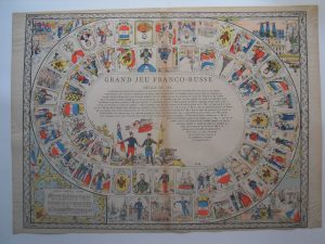 55,5 cm, manques et restaurations ; " Jeu de l'oie ", 41 x 55 cm - [E. Ferry] " Grand jeu du pont terrible ", 50 x 65 cm ; " Grand jeu du voyage à l'exposition de 1889 à Paris ", 50 x 65 cm - [M. Vagné] : " Grand jeu de l'armée française ", 41 x 57 cm ; " Grand jeu Franco-Russe ", 41 x 56,5 cm.