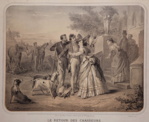Léandre 3 lithographies et 1 dessin original rehaussé de couleurs (Méline)- Willette (8 litho. Dont faire-part naissance d’Yvonne Floury)- Isabey (4) et pièces diverses.